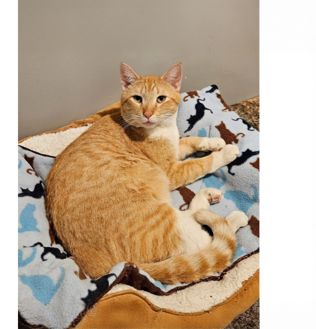 Buddy is an orange and white tabby. He is a big fellow who would be your friend, pal, and compatriot. He would be a person whom you can rely upon in your greatest time of need; one who can be considered a surrogate sibling. Who wouldn’t want a brother like this? Buddy prefers that his toys not include sticks or string. Buddy does not care for dogs or other cats. Buddy is FIV+.